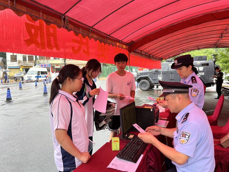 龍門中學考點,龍門公安民警為考生出具身份證明。惠州日報記者黃宇翔 攝