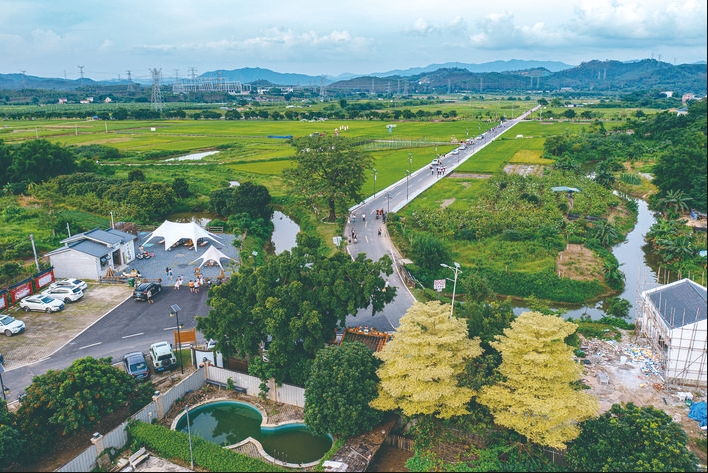 哐當哐當……遠方兩列小火車滿載游客從稻田里的軌道駛來,東江上吹來的江風裹著春泥稻花香在身邊縈繞,這畫面不是宮崎駿的動畫,而是咱們惠州人熟悉的墨園村。這個顏值頗高的“網紅”村,位于惠州市惠城區橫瀝鎮東北約6公里處的東江東岸,東、西、北三面環山,村域面積約2.6平方公里。墨園村是省“百千萬工程”首批典型村,結合村情村貌運營提升后的傳統民居錯落有致,田野清新美麗、游玩項目豐富多彩,吸引了眾多游客前來打卡游玩。