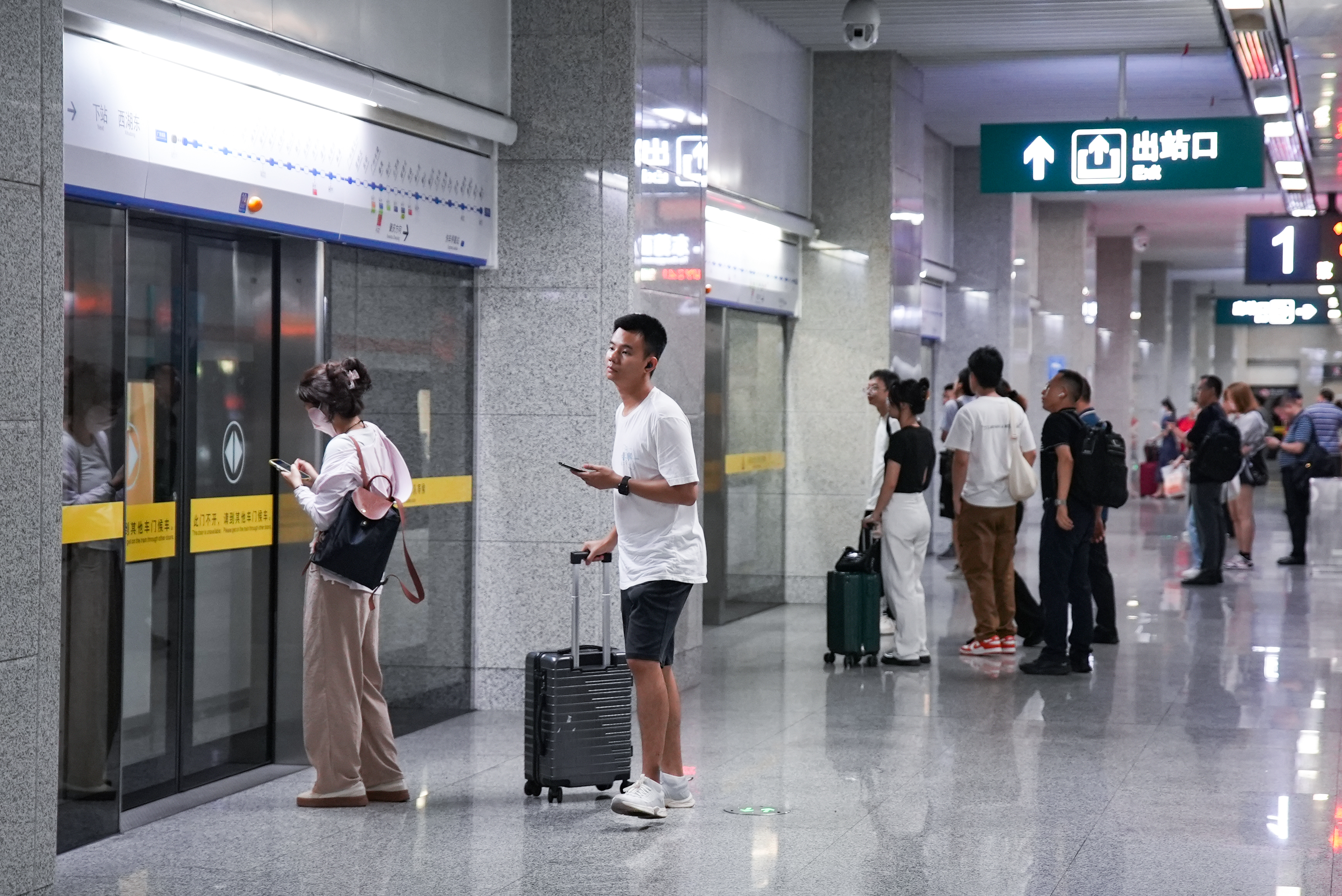 乘客在等候列車進站;葜萑請笥浾吡_劍業(yè) 攝