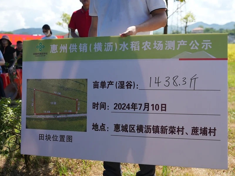 七月盛夏,天朗氣清,被谷子壓彎了腰的稻穗在微風中輕輕搖曳……7月10日上午,2024惠州市供銷社“藏糧于地、藏糧于技”示范農場測產活動在橫瀝供銷農場舉行。通過技術人員的實地測量,當天在橫瀝鎮新榮村、蔗埔村測得水稻畝產量為1438.3斤(濕稻谷),取得了來之不易的亮麗成績。