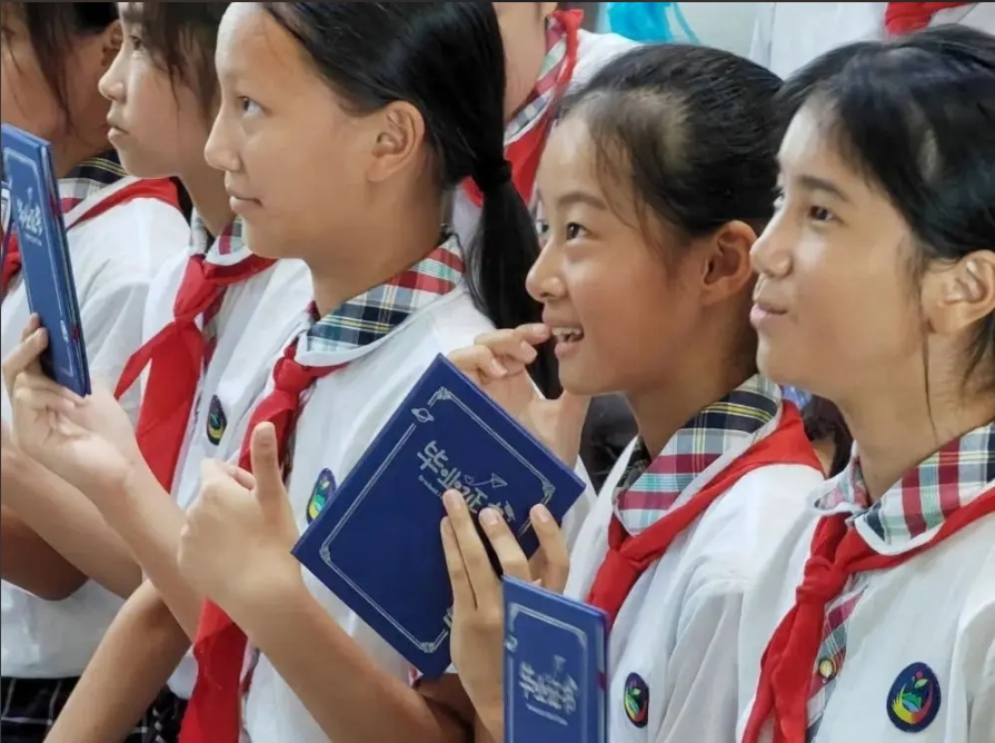 記者去惠州采訪的時間,正趕上鄭好好的小學畢業典禮。穿著白襯衫、格子裙,戴著紅領巾,鄭好好和其他參加畢業典禮的小學生別無二致。如果非要說有什么不一樣,可能是她長期在戶外運動曬出的小麥色皮膚。