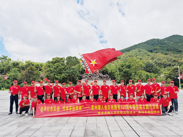 傳承紅色基因,筑夢美好未來。為進(jìn)一步強(qiáng)化黨建引領(lǐng),增強(qiáng)商會(huì)隊(duì)伍凝聚力,7月13日,惠州市潮人文化經(jīng)濟(jì)促進(jìn)會(huì)、惠州市潮汕商會(huì)(以下簡稱“惠州潮人會(huì)”)開展以“追尋紅色足跡 傳承革命精神”為主題的黨建活動(dòng),黨員干部、商會(huì)成員代表40余人走進(jìn)革命老區(qū)惠東高潭進(jìn)行參觀學(xué)習(xí),接受革命精神的洗禮。活動(dòng)旨在通過重溫革命歷史,凝聚商會(huì)力量,以高質(zhì)量黨建推動(dòng)經(jīng)濟(jì)社會(huì)高質(zhì)量發(fā)展,加速構(gòu)建新質(zhì)生產(chǎn)力。
