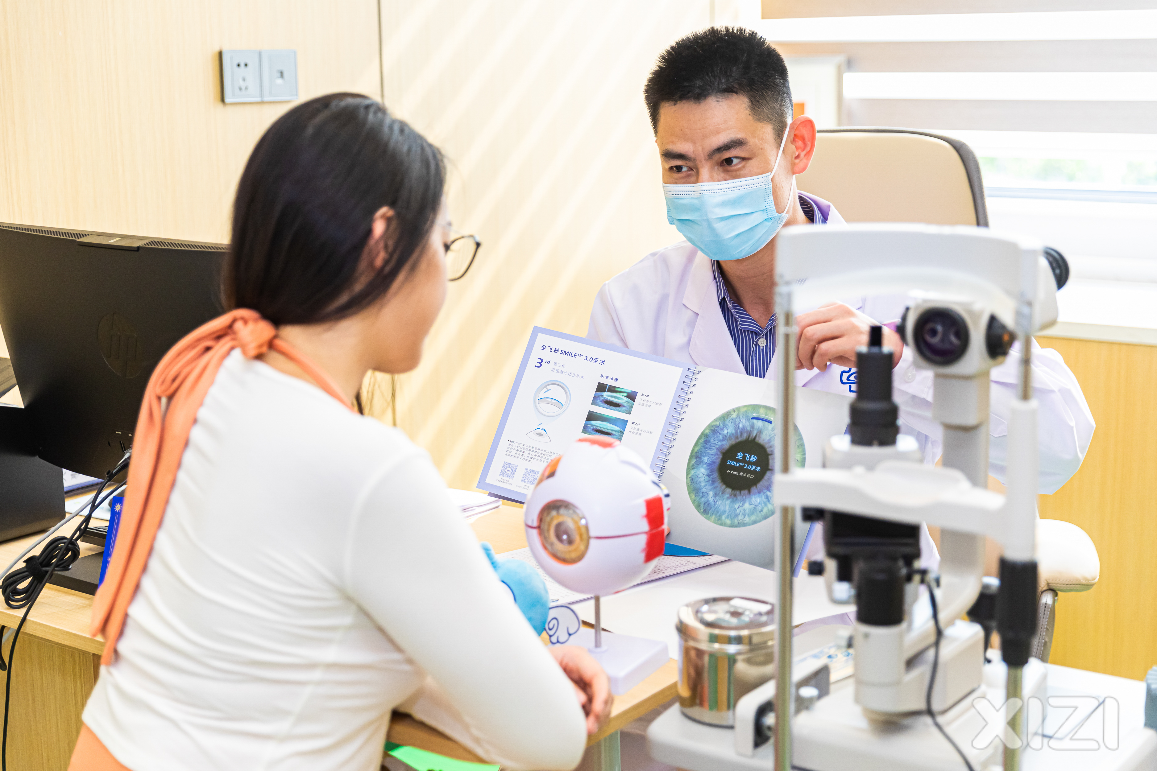 惠州明康眼科醫院副院長高穩生向患者介紹摘鏡方案。