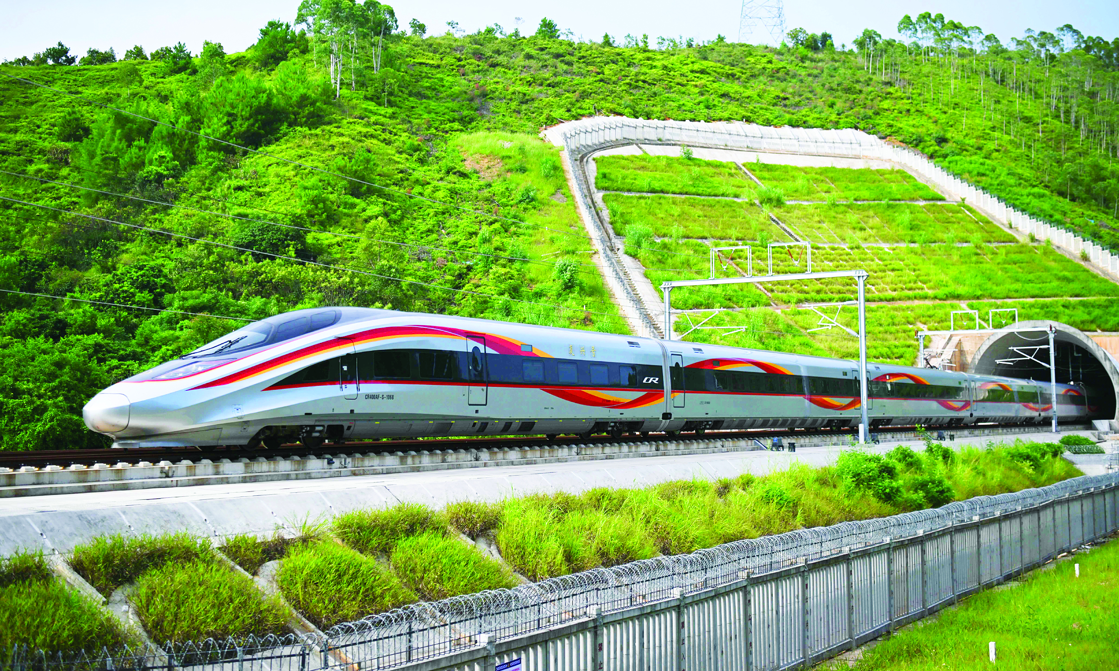 9月14日上午11點(diǎn)30分,G8491次列車從梅州西站緩緩駛出,龍巖至龍川高鐵梅州西至龍川西段正式開通運(yùn)營。自此,中國鐵路運(yùn)營里程突破16萬公里,我國鐵路發(fā)展邁上新臺階。這是9月13日,復(fù)興號試驗(yàn)列車駛出龍龍高鐵梅龍段毛公寨隧道。新華社發(fā)