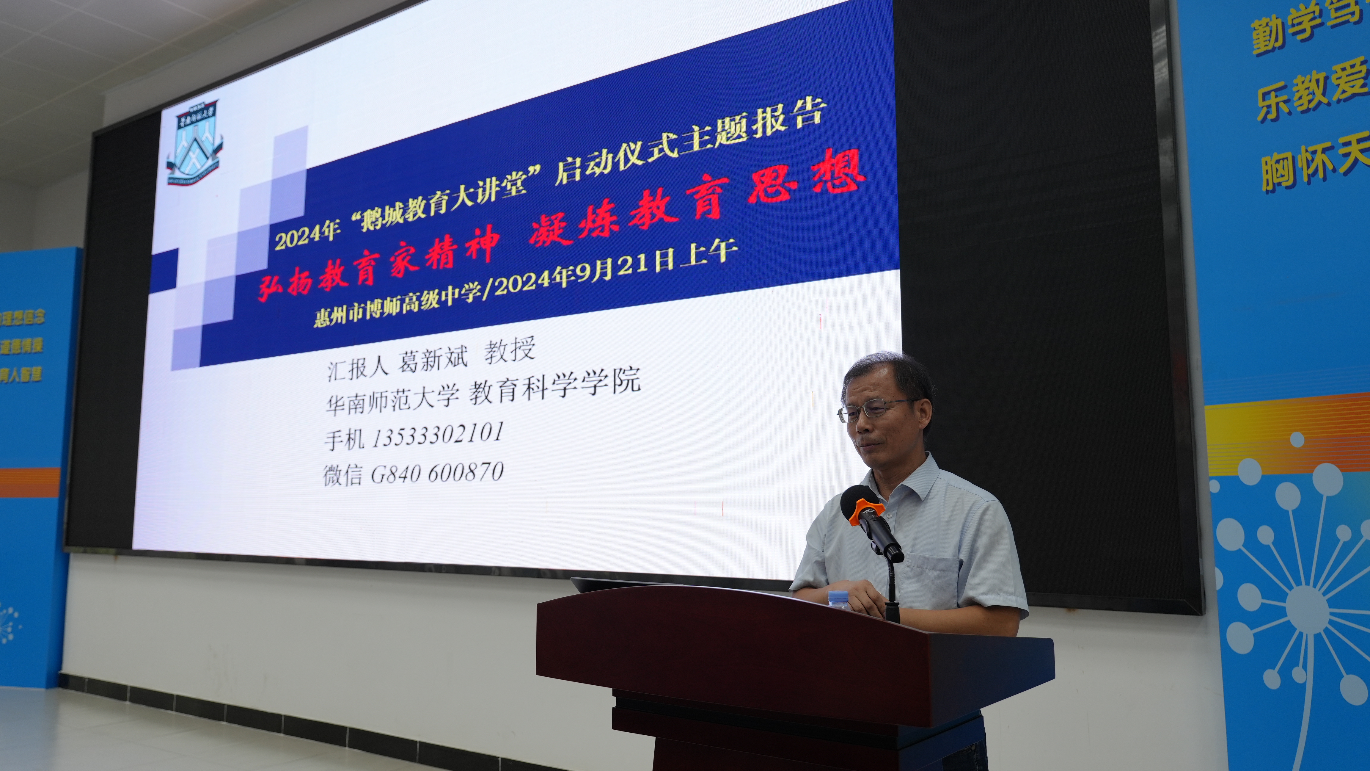 9月21日,“鵝城教育大講堂”首場主題報告會在博羅縣博師高級中學舉行,四位來自高校的專家教授、一線的優秀校長和教師分別作主題報告和主題演講,共同搭建助推區域基礎教育高質量發展的對話平臺。