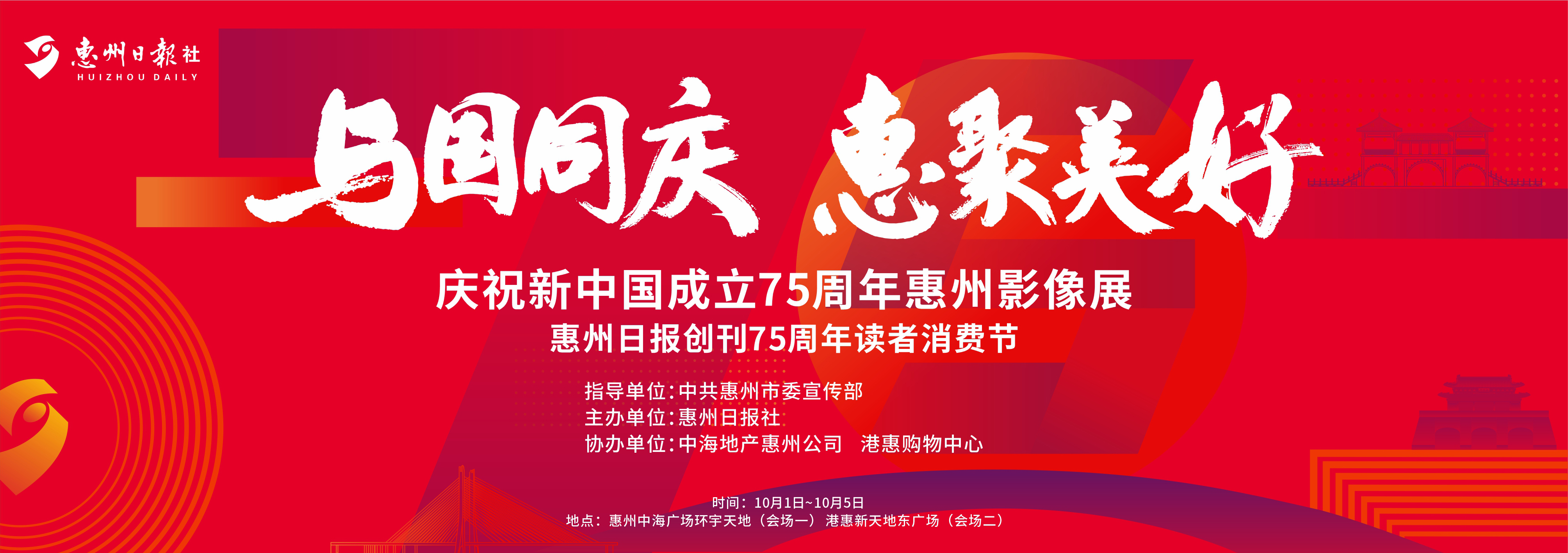 10月1日至5日,由惠州日報社策劃主辦的“與國同慶 惠聚美好”主題系列活動將精彩上演,包括“砥礪奮進 競逐一流”——慶祝新中國成立75周年惠州影像展,以及“惠聚75載 悅購嘉年華”——惠州日報創(chuàng)刊75周年讀者@ 惠州人 好吃、好玩、好看的,明天這里都有!10月1日至5日,由惠州日報社策劃主辦的“與國同慶 惠聚美好”主題系列活動將精彩上演,包括“砥礪奮進 競逐一流”——慶祝新中國成立75周年惠州影像展,以及“惠聚75載 悅購嘉年華”——惠州日報創(chuàng)刊75周年讀者節(jié)等活動,內(nèi)容豐富福利多多,精彩不容錯過。