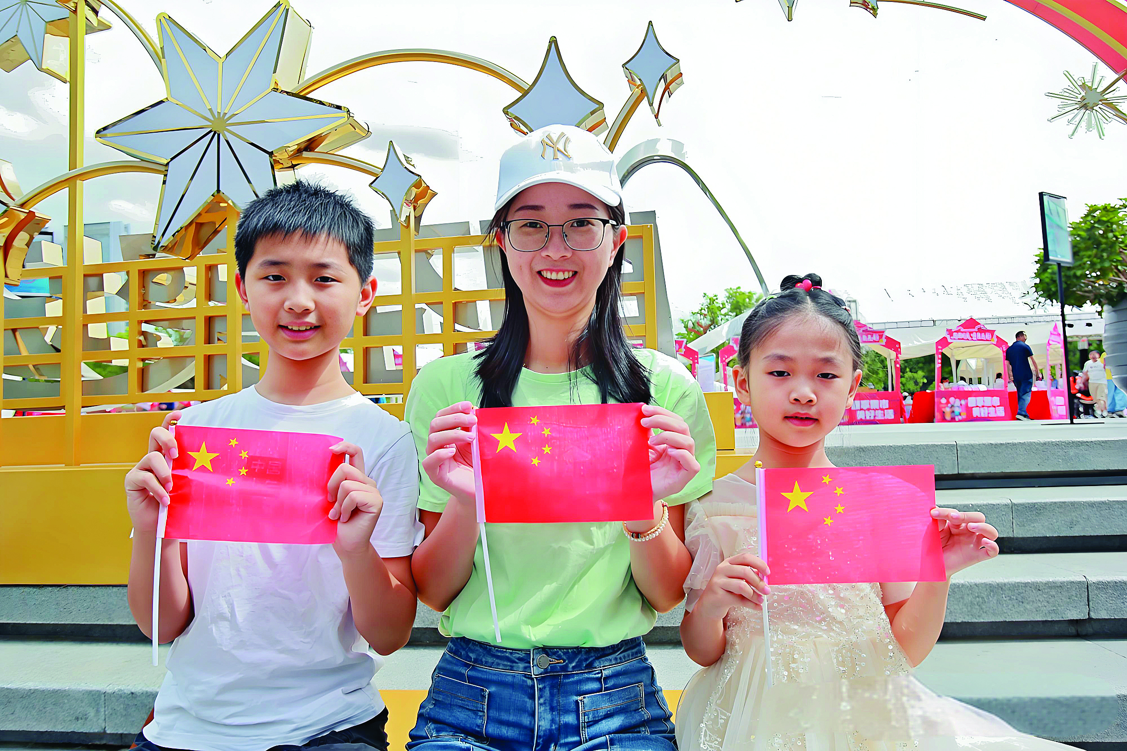 迎風招展的五星紅旗,不僅點亮了城市的每個角落,更飄揚在每個人心中。國慶節期間,人們以各種方式表達對祖國的熱愛與祝福,莊嚴的升旗儀式、熱鬧的慶祝活動、潮流的“快閃”合唱、與國旗同框合影、貼個五星紅旗臉貼……表達的都是對國家繁榮昌盛的自豪與驕傲,對美好生活的向往與追求。