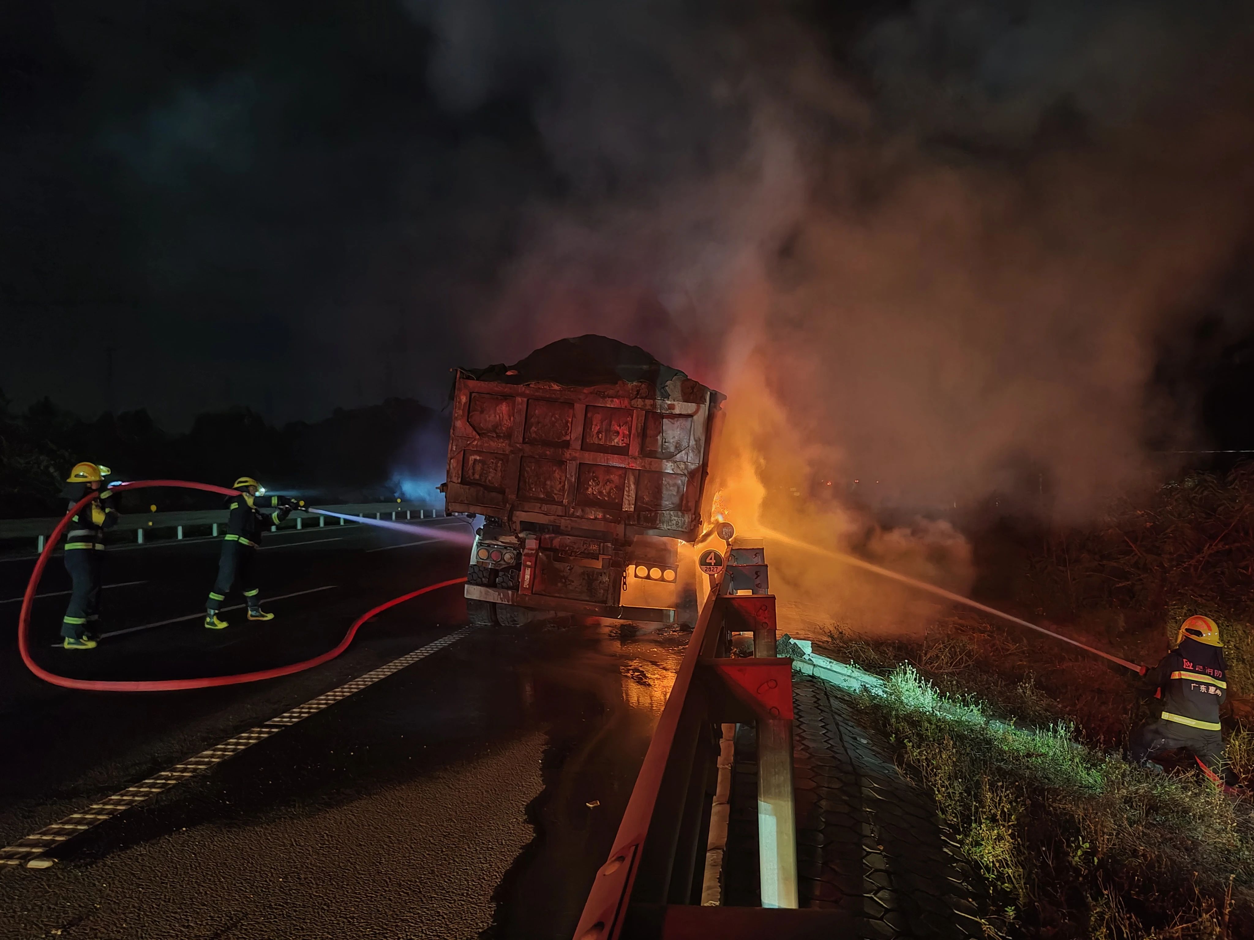 消防救援人員到達現場后經勘查發現,事故車輛上一輛裝載泥土的貨車,著火部位為貨車的右后輪胎。指揮員派出警示人員在車輛后方路段設置警戒區,隨后出水槍對著火部位進行滅火降溫,很快明火被撲滅。