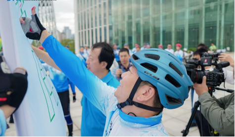 26日和27日,騎行隊伍途經惠州大亞灣、巽寮灣等地,這里的美麗鄉村、秀麗海景,給來自大灣區的騎行隊員們留下深刻印象。頗為壯觀的騎行隊伍魚貫而行,活力向上,也吸引了沿途惠州市民的熱情鼓勵,在中途補給區,不少人還受邀在“集贊大旗”上手工點贊。