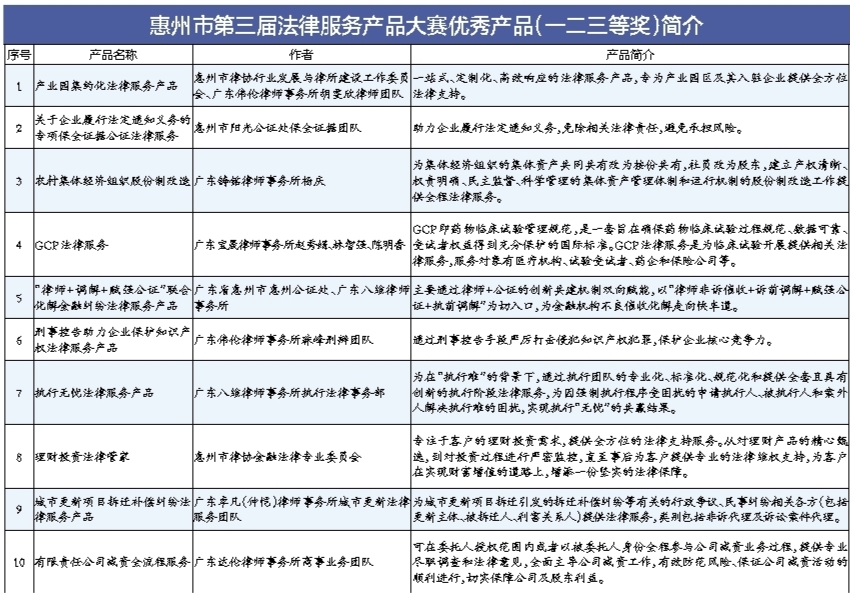 29個優秀法律服務產品入圍決賽!惠州市第三屆法律服務產品大賽結果出爐