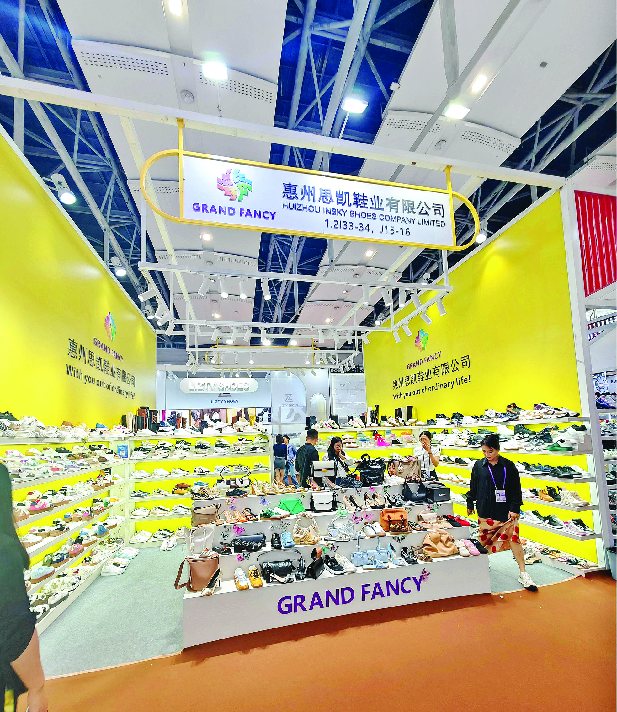 客商在思凱鞋業展位挑選。惠州日報記者劉煒煒 通訊員葉向軍 攝