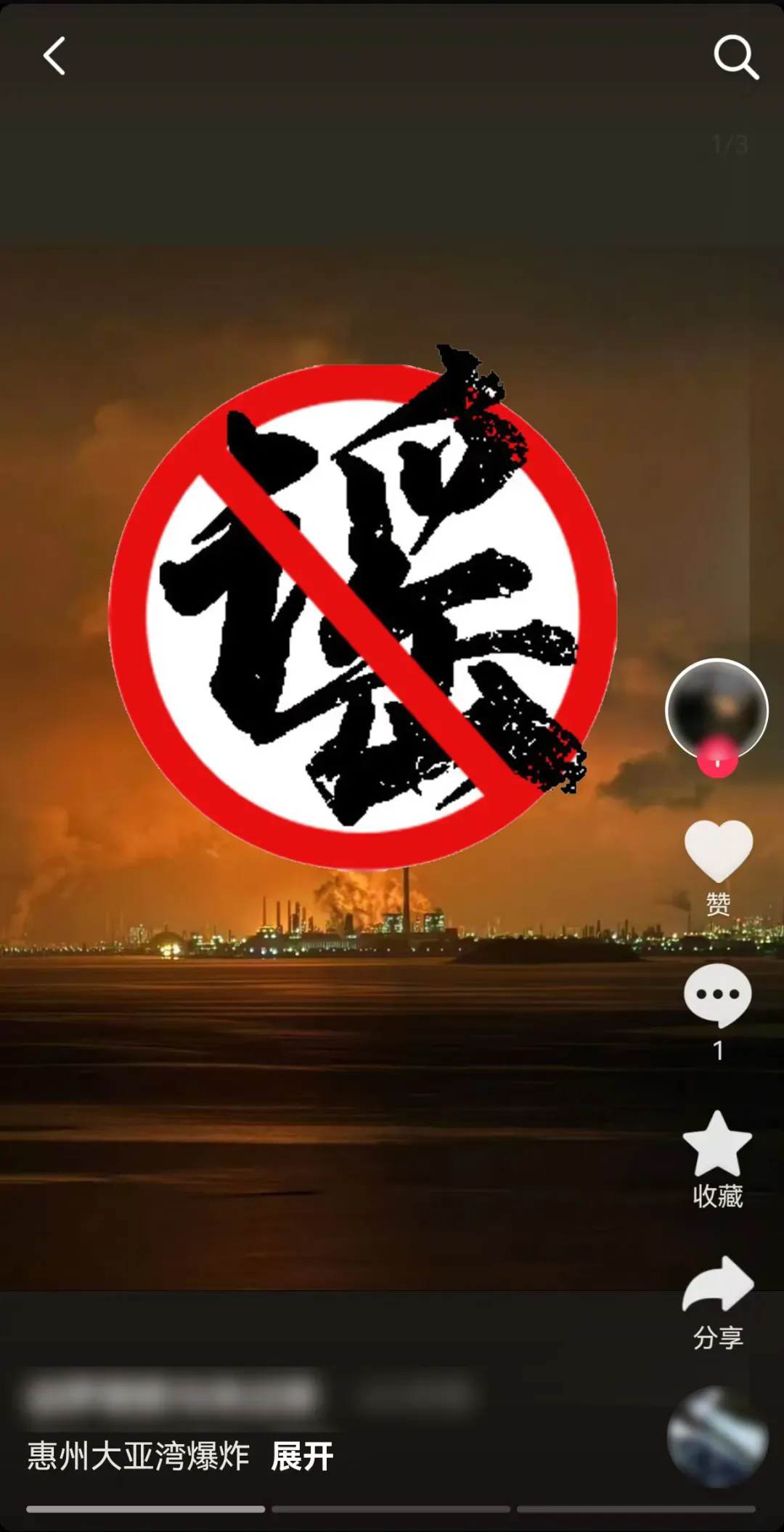近日,有網民在某網絡平臺發布虛假視頻稱“惠州大亞灣發生爆炸”,引發大量網民關注、討論,造成惡劣社會影響。