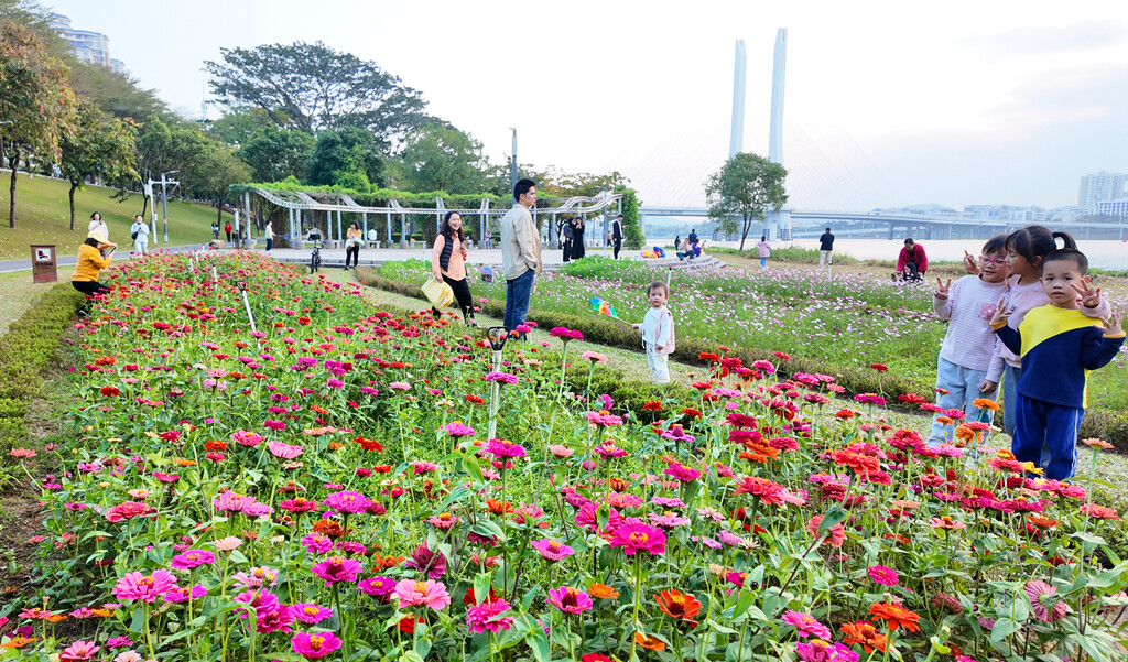 行走在惠州西湖邊,看那水天一色的壯美和一輪朝陽騰空的柔和;東江公園靠近合生大橋橋下的一片花田,各種花卉入眼成畫,美不勝收;水口街道萬盧村,行走在落羽杉下的小道,滿眼的黃色平添了一道獨(dú)特的魅力;傍晚,落日的晚霞把鵝城大橋映襯在粉紅色中,勾勒出一幅美妙的畫卷……當(dāng)北方不少城市已經(jīng)銀裝素裹,惠州的冬日顯得那樣溫柔、平和、閑靜。
