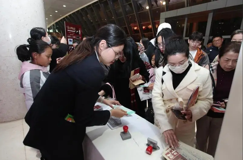 舞劇《永不消逝的電波》開場前,觀眾前往蓋章打卡。惠報全媒體記者鐘暢新 攝