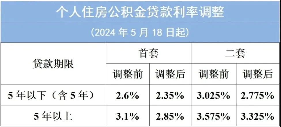 根據《中國人民銀行關于下調個人住房公積金貸款利率的通知》,市公積金中心自2024年5月18日起,下調個人住房公積金貸款利率0.25個百分點,即調整如下: