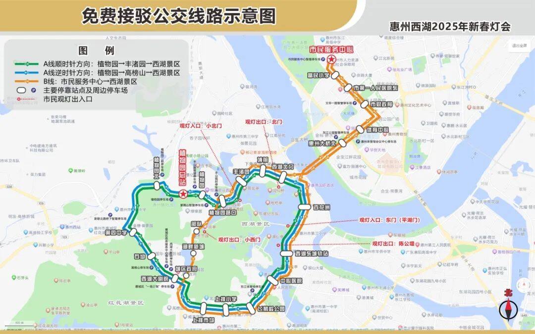 博羅、惠陽、惠東的市民朋友想要賞燈,可乘坐定制公交專線,直達燈會入園入口(西湖東城軌站),回程于植物園總站上車,接送市民往返出行。