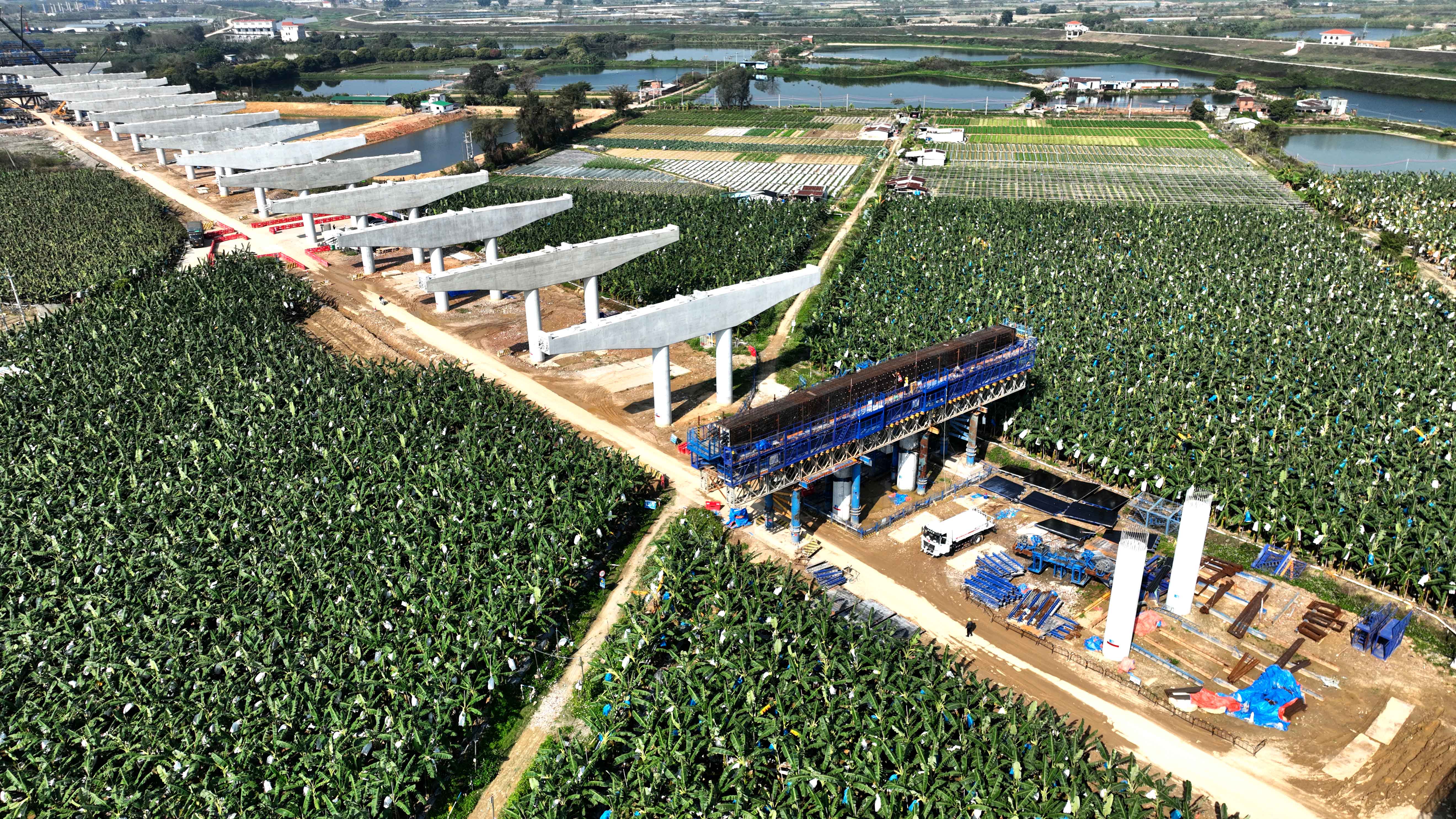 這是惠肇高速石灣鎮路段,采用雙柱大懸臂蓋梁的結構形式施工,增加橋下利用空間。