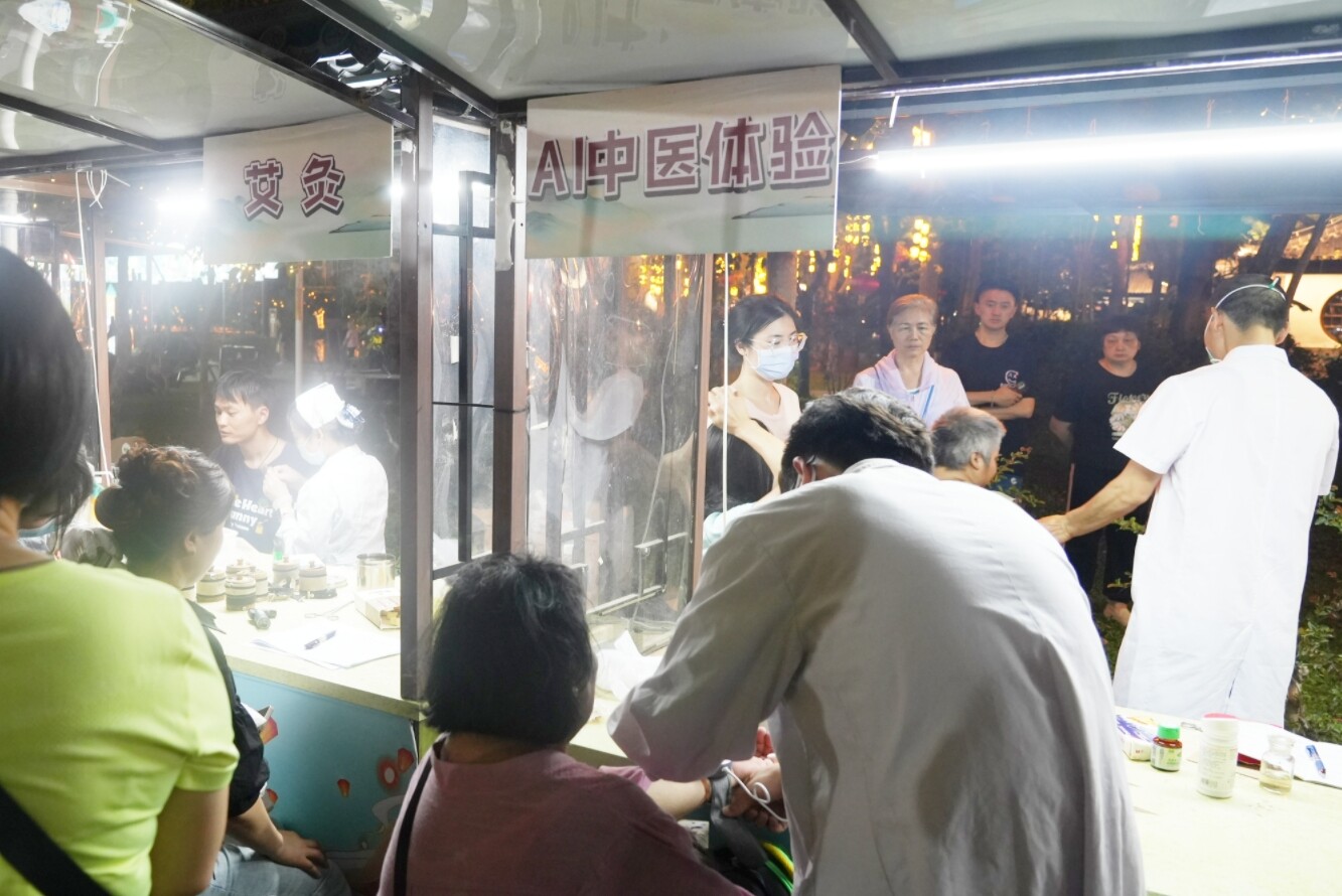“健康夜市”不僅有多樣中醫傳統項目,還有人工智能技術的加持,現場的市中醫醫院AI中醫體驗攤位吸引了眾多市民“嘗鮮”。