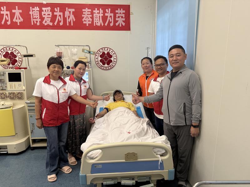 4月28日,捐獻當天下午,躺在采集室的病床上,看著鮮紅的血液在透明管路中流淌,葉勇明腦海里不斷勾勒著那個未曾謀面的TA。由于患者隱私,葉勇明并不知道對方情況,TA或許是正在與病魔頑強抗爭的年輕人,也或許是父母懷中倔強微笑的孩童。每一次血液的循環往復,都像是在編織一條無形的生命紐帶,將兩個素不相識的靈魂緊緊系在一起。