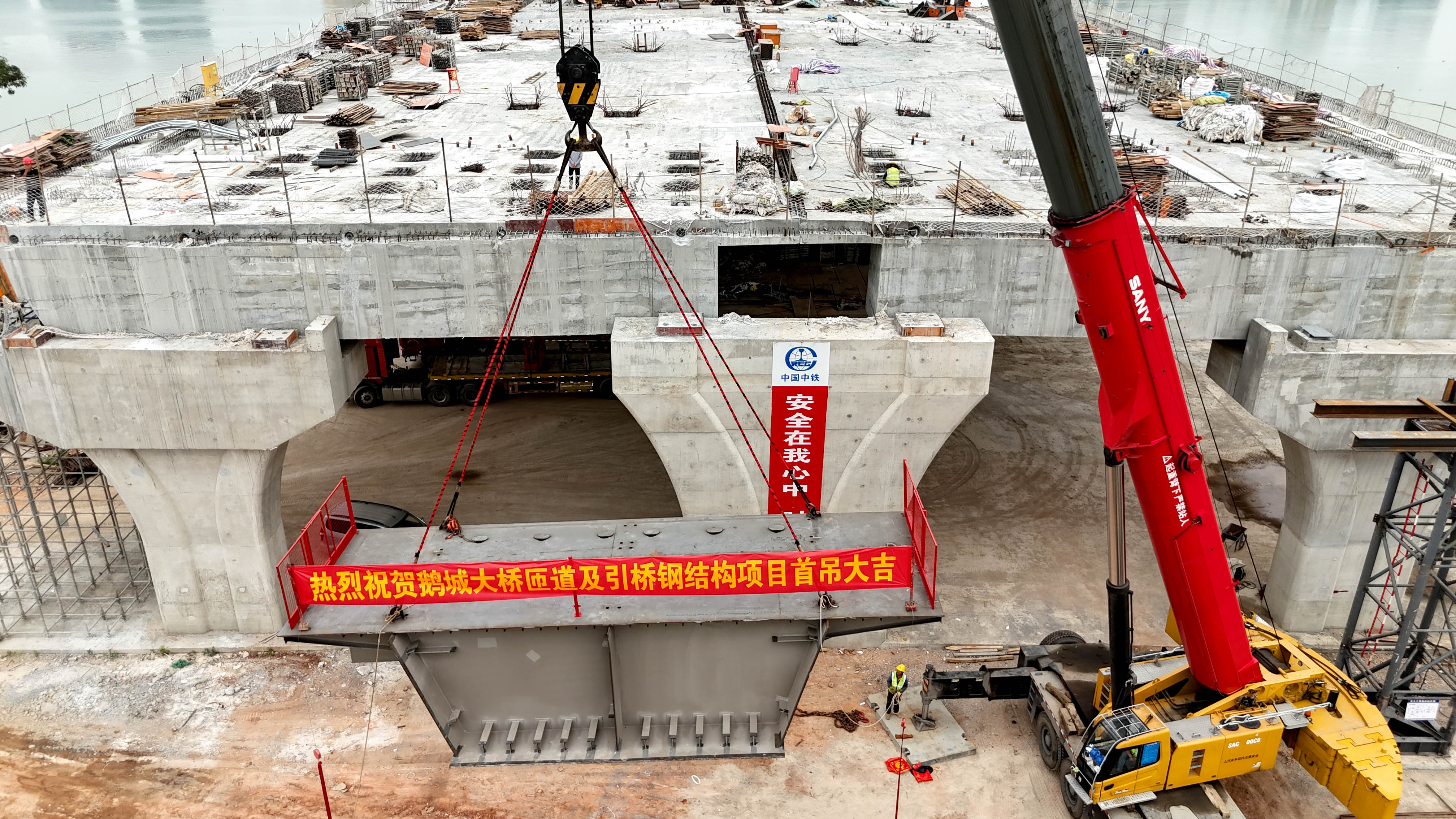 主橋正式進入鋼梁架設階段,一片片鋼梁被精準吊起、拼接,如同搭建一座宏偉的鋼鐵積木,施工場面震撼人心