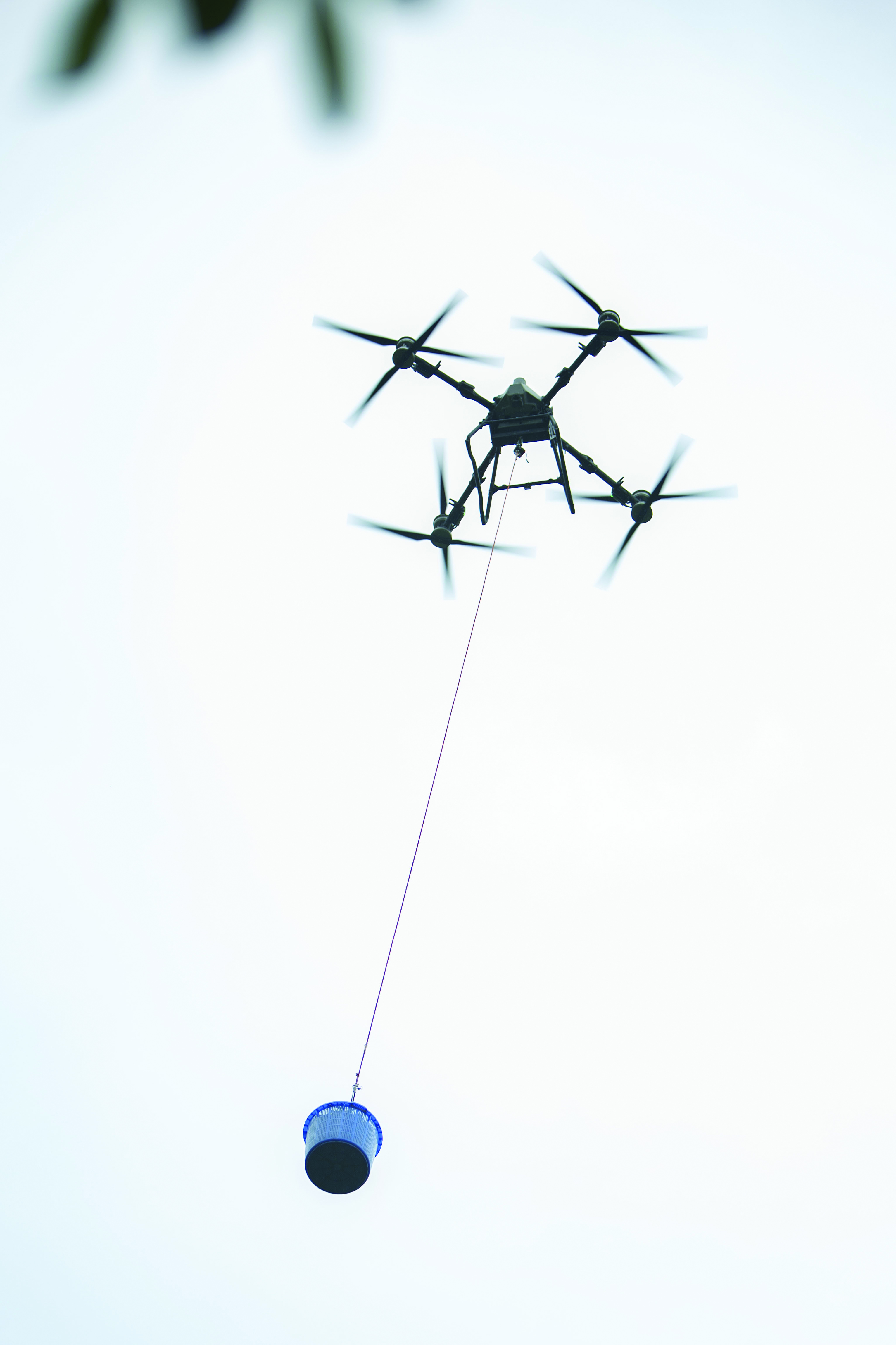 農用無人機吊運荔枝。 惠州日報記者劉豪偉 攝