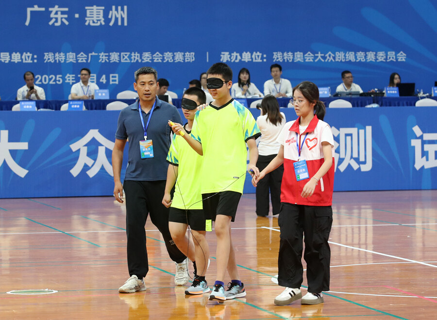據介紹,本次殘特奧會大眾跳繩項目測試賽設有視力、智力、聽力3個殘疾組別,按照競賽規程有關要求,共設計數賽及花樣賽2個大項11個小項的比賽。