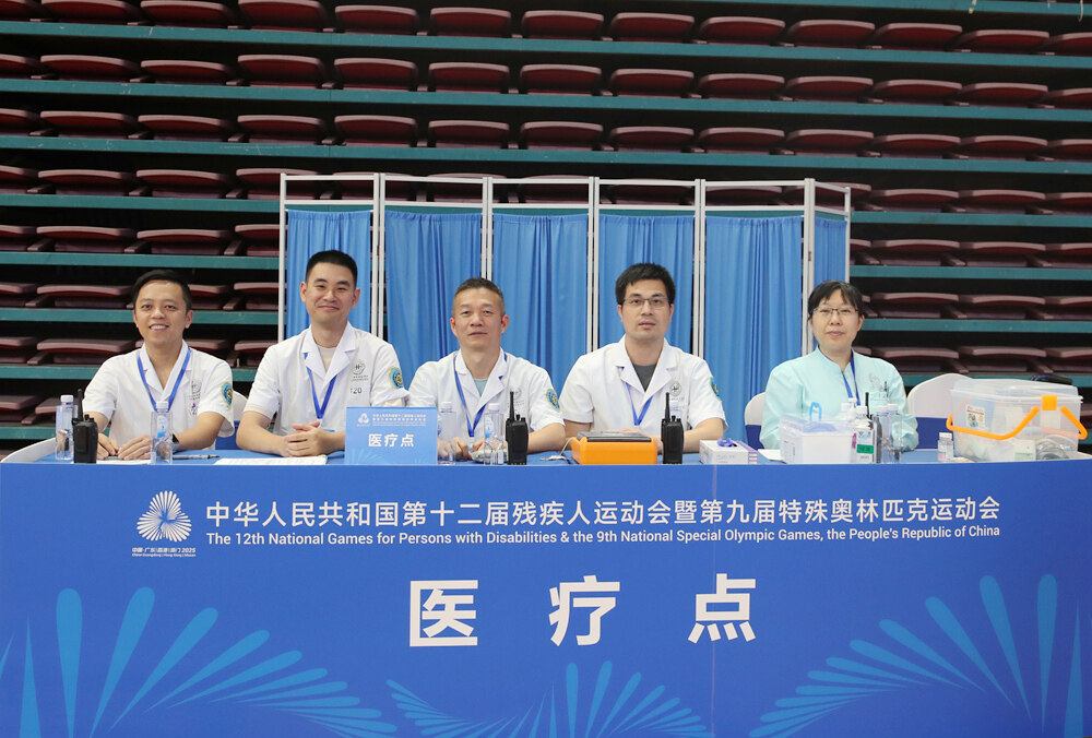 醫護人員為全國第十二屆殘疾人運動會暨第九屆特殊奧林匹克運動會大眾跳繩測試賽保駕護航。
