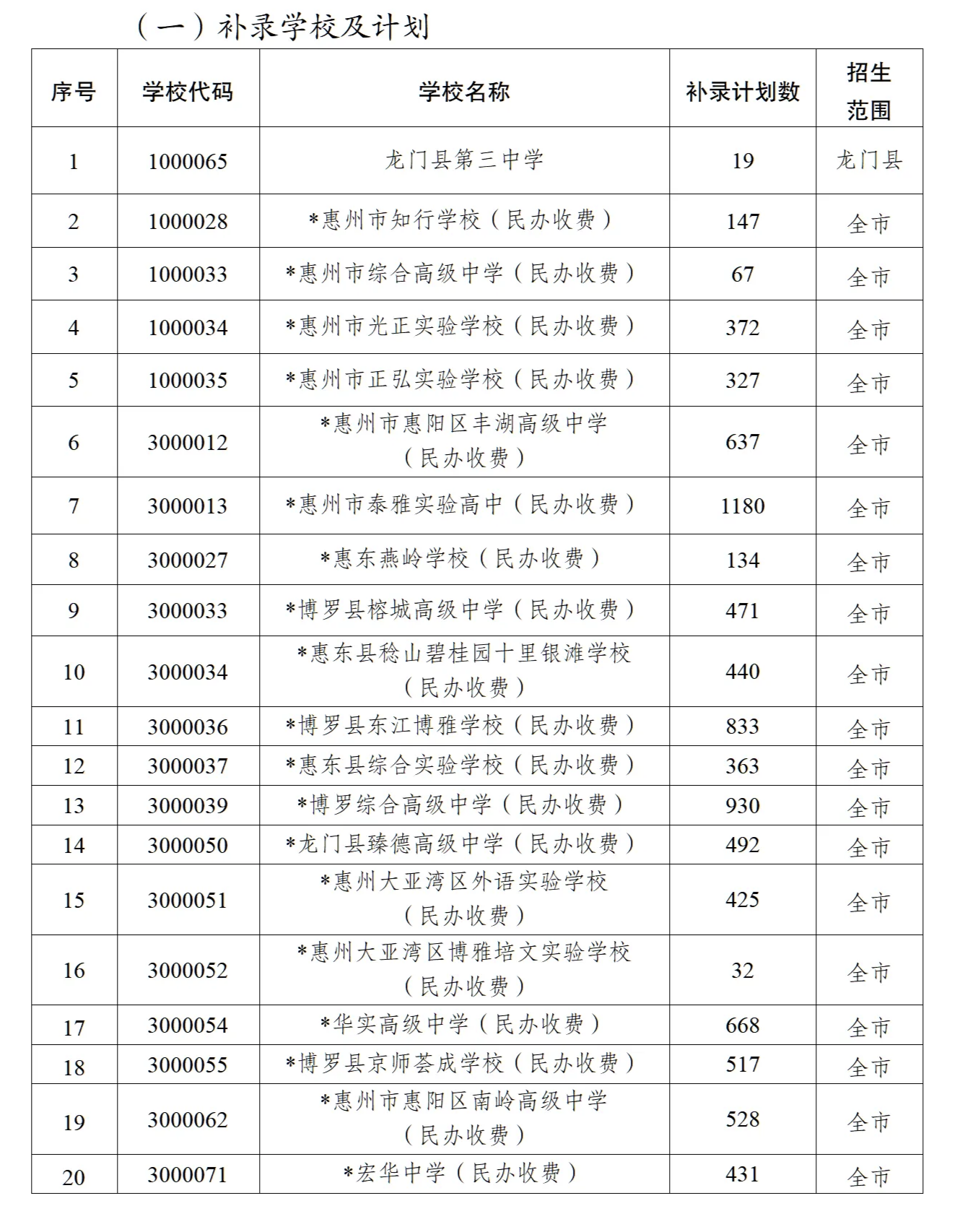 根據全市普通高中學校第一階段錄取結果,20所學校尚余招生指標,除了龍門縣第三中學只面向龍門考生補錄外,其他19所學校的補錄對象為在我市參加2025年中考的考生,如考生(普通生及特長生)在普通高中各批次中均未被我市普通高中學校錄取,且中考成績在395分及以上,即可參加補錄。符合補錄條件且自愿選擇參加補錄的考生須按流程填報補錄志愿,符合補錄條件但未填補錄志愿的考生不能參加補錄。