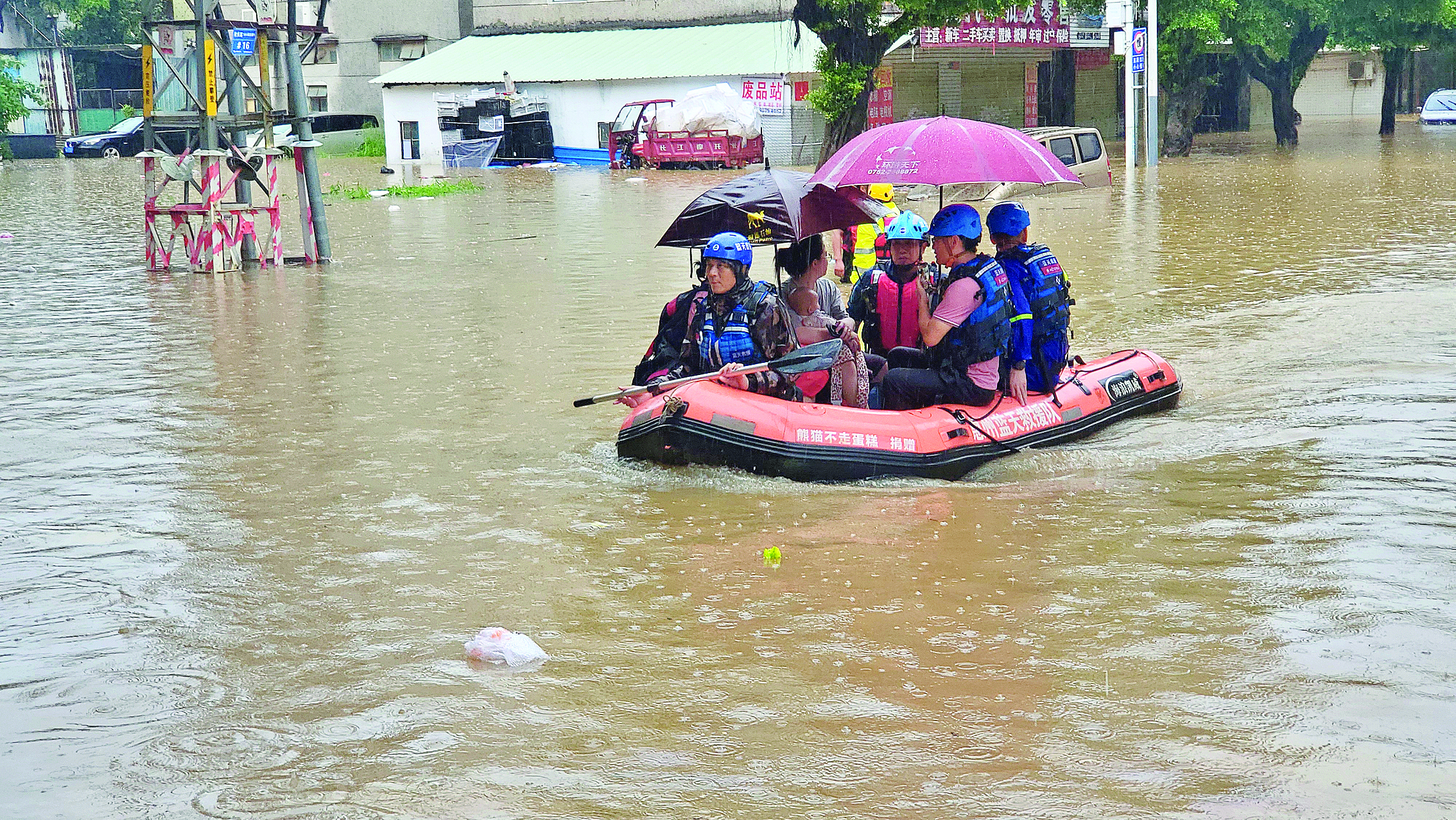 藍天救援隊的沖鋒舟在轉移祖孫三人時,多次遭漂浮雜物撞擊。救援隊員一手護著群眾,一手奮力撥開障礙物,最終將三人安全轉移。直播彈幕瞬間被“致敬!”“注意安全!”的留言刷屏。