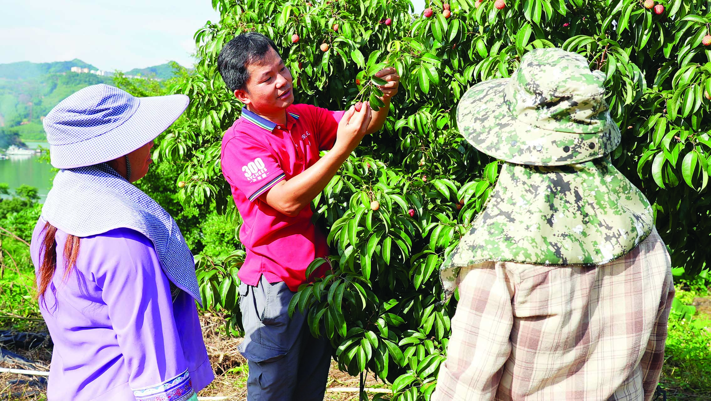 “品種創新是提升產業競爭力的根本,要保證品質,就要讓技術在這里扎根。”在對選育或引進的荔枝新品種進行適應性與區域性試驗,從中挑選適合當地種植的品種并推廣的同時,吳宇輝團隊還在高洛街道、巧馬鎮、雙江鎮等低熱河谷地帶設立荔枝新品種示范點,并對低效荔枝園進行高枝嫁接改造。