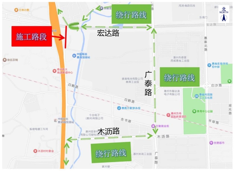 11月6日,惠州日報記者從市公安局交管支隊獲悉,11月8日至施工結束(共約25日),惠澳大道東線(宏達路-木瀝路段)封閉,禁止車輛通行。惠州交管部門提醒,途經車輛請通過木瀝路-廣泰路-宏達路繞行。