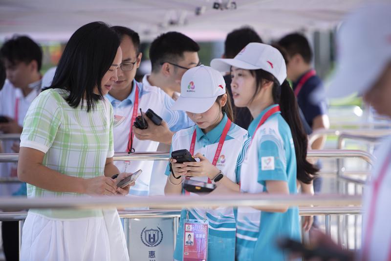 賽會志愿者為賽事提供專業、暖心的全流程服務。 十五運會惠州賽區執委會志愿服務部供圖