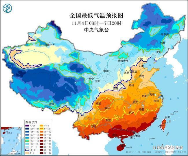 中央氣象臺11月4日06時繼續發布寒潮藍色預警:
