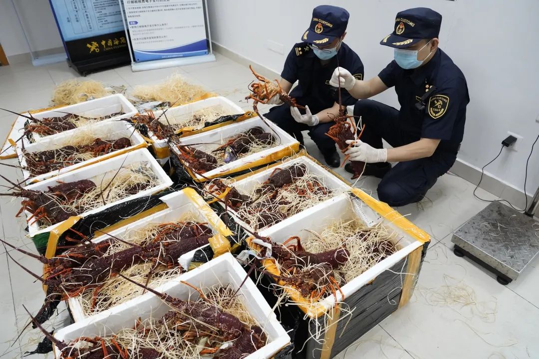 隨后,該關(guān)依法將該批龍蝦扣留做送檢處理