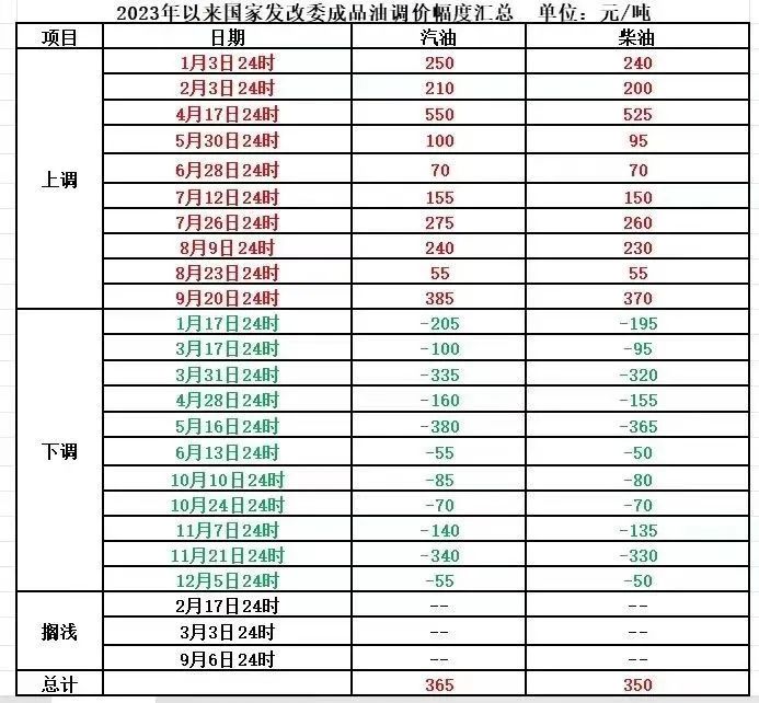 今年以來到目前為止,國內油價下調幅度最大的一次是5月16日,當時汽、柴油每噸分別下調了380元和365元,折算下來92號汽油每升下調了0.3元;0號柴油每升下調了0.32元。