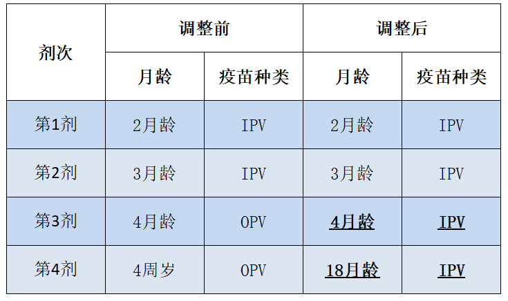 實施“4劑次IPV”免疫程序接種疫苗,兒童2、3、4月齡各接種1劑IPV基礎免疫,18月齡接種1劑IPV加強免疫。