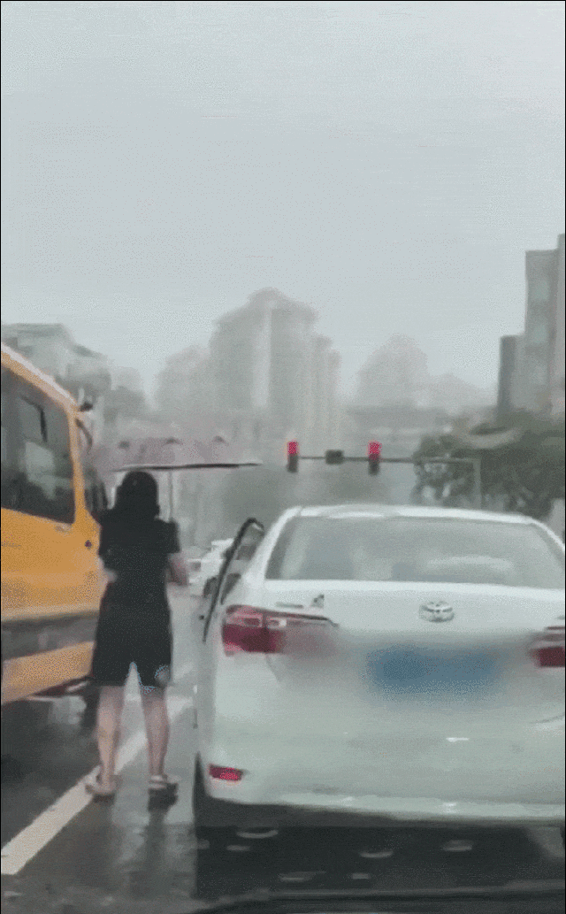 “當時我喊孩子進車來躲雨,孩子擺擺手,他可能覺得是陌生人的車,也不好意思上我的車。”拍攝者張女士向記者表示,自己當時車里沒有傘也很著急。