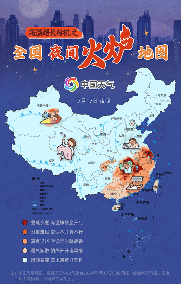 全國(guó)夜間火爐地圖發(fā)布 這些地方熱如蒸籠