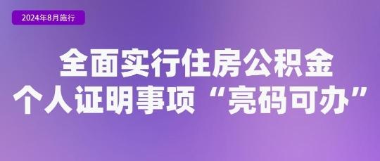 《住房城鄉建設部辦公廳關于整合住房公積金個人證明事項推動“亮碼可辦”工作的通知》提出,依托全國住房公積金小程序和全國住房公積金監管服務平臺,在住房公積金繳存人申請開具職工繳存證明、異地貸款繳存使用證明、貸款結清證明等個人證明時,向其提供實時在線開具、后臺自動查驗等服務,以統一“電子碼”代替原有3項紙質證明,實現住房公積金個人證明事項“亮碼可辦”。2024年8月起,全面實行住房公積金個人證明事項“亮碼可辦”。