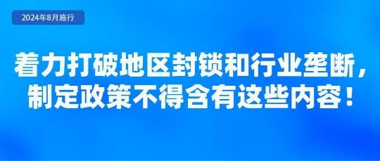 國務院總理李強簽署國務院令,公布《公平競爭審查條例》,自2024年8月1日起施行。《條例》明確了公平競爭審查標準。起草政策措施,不得含有限制或者變相限制市場準入和退出、限制商品和要素自由流動、不當影響生產經營成本和影響生產經營行為的內容。市場監督管理部門組織對有關政策措施開展抽查,對違反《條例》規定的,應當督促起草單位進行整改。對違反《條例》規定的政策措施,任何單位和個人可以向市場監督管理部門舉報。