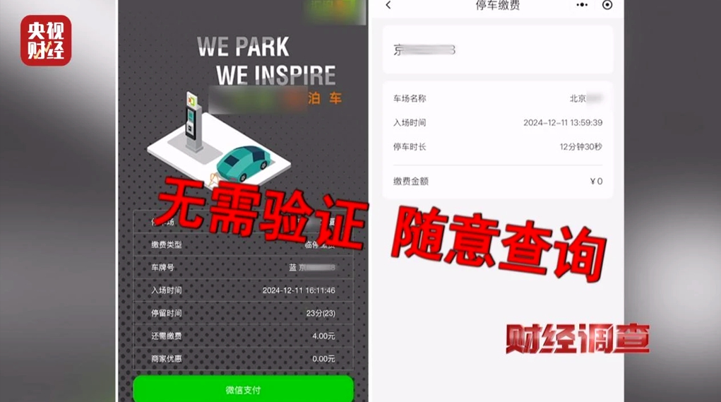 《財經調查》對北京兩個采用了“智慧停車”系統的停車場進行了技術檢測。駕駛員將車駛入停車場,遠在幾公里外的專業技術人員,輸入車輛的車牌號后,無需身份驗證,輕而易舉地就獲得了車輛所在停車場、車輛入場時間等敏感信息。