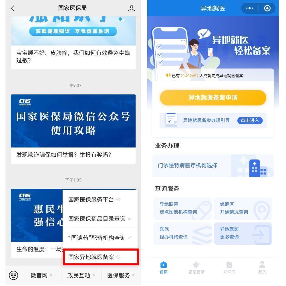 跨省異地長期居住或跨省臨時(shí)外出就醫(yī)的參保人員,辦理異地就醫(yī)備案后,可以享受跨省異地就醫(yī)直接結(jié)算服務(wù)。記者從國家醫(yī)保局了解到,國家醫(yī)保局微信公眾號已開通異地就醫(yī)備案辦理功能。符合條件的參保人員只需簡單幾步操作,即可完成跨省異地就醫(yī)備案,并在異地就醫(yī)時(shí)實(shí)現(xiàn)直接結(jié)算。