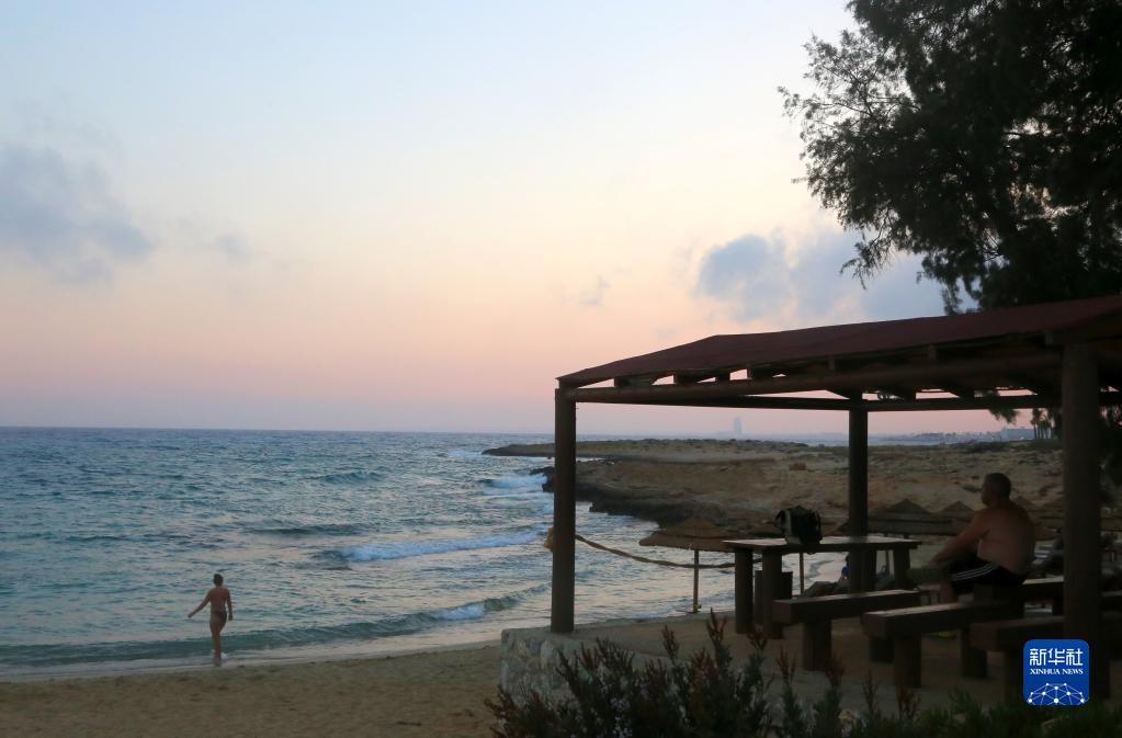 6月26日,一名男子站在塞浦路斯圣納帕“愛之橋”附近的海濱。