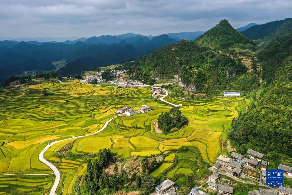 這是9月7日拍攝的貴州省貴定縣沿山鎮臘利梯田與村莊(無人機照片)。