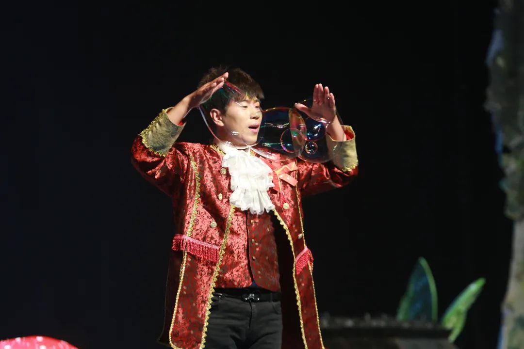 最后小精靈跟泡泡王子找到了科學博士,在科學博士以及小朋友們的幫助下,研究出了最厲害的泡泡,泡泡王子跟小精靈帶著研究出來的泡泡去找黑魔法師,最后通過泡泡煙火以及空氣大炮甜甜圈戰勝了黑魔法師,救出了公主,在國王的見證下,公主嫁給了泡泡王子,整個王國又回到了安詳的生活,現場的泡泡世界把觀眾帶入一個個美麗的童話世界,大家一起唱歌,一起跳舞…