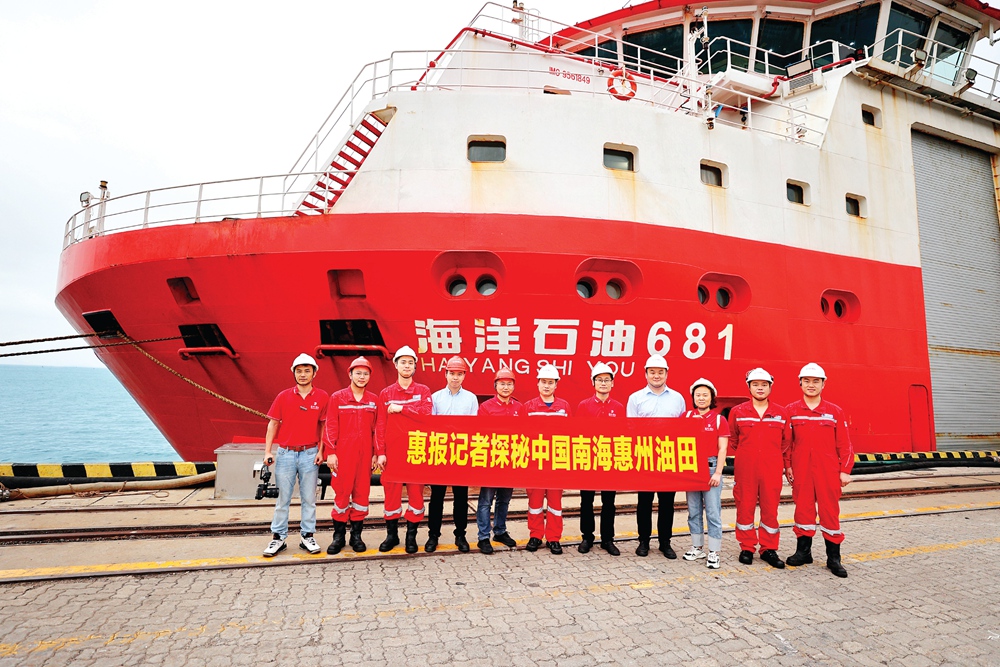 4月23日,“惠報(bào)記者探秘中國(guó)南;葜萦吞铩比襟w采訪報(bào)道組從中海石油惠州物流基地離港出發(fā)。