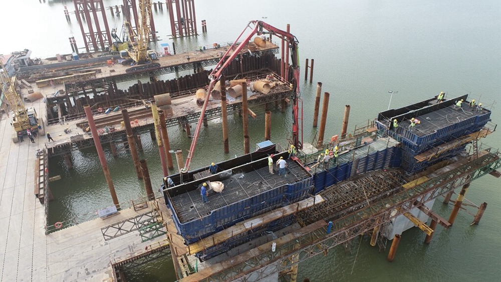 大橋主橋承臺和墩身施工進入沖刺階段
