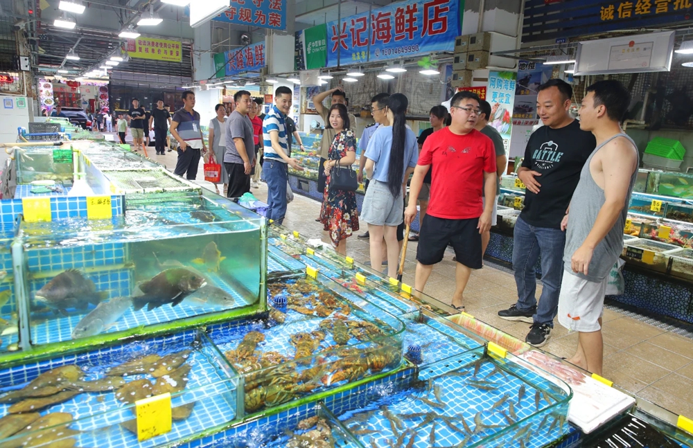 執(zhí)法人員在惠東港口濱海旅游度假區(qū)的海鮮市場(chǎng)開展“清秤大行動(dòng)”;葜萑?qǐng)?bào)記者洪鵲兒 攝