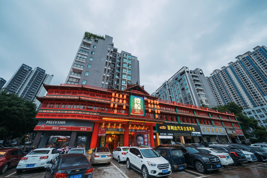 位于惠城區口岸路的“燈船”唐風建筑風格十分醒目。