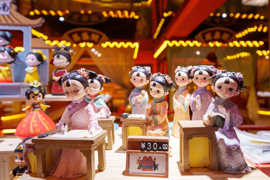 古色古香的集市攤位擺放著有趣的古風小物件。